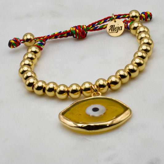 Pulsera Balines Y Ojo Turco Ambar